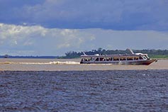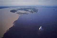 | ソリモンエス川と黒い支流のネグロ川の合流 | ソリモンエス川と黒い支流のネグロ川の合流 | 乾季のアマゾン川 |