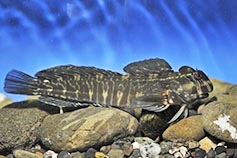 潮だまりの岩の上を胸びれと尾びれを使って跳んで移動する動作や、唇が厚く頭の前端が垂直で、目が上縁にある様子がカエルに似ていることが名前の由来とされています。しかし、陸上に出る行動はあまり確認されていないようです。千葉県から屋久島にかけての太平洋岸と、兵庫県から九州南岸にかけての日本海岸に広く分布するとされます。新種発表の際に標本が神奈川県の江の島産であったことにちなんで(学名:Istiblennius enosimae)と「エノシマエ」の名を授かっています。同じスズキ目・イソギンポ科のヨダレカケやタマカエルウオは、水中に入るのを嫌い、波しぶきのかかる陸上・磯部でよく見られます。魚なのにエラ呼吸だけでなく皮膚呼吸ができるためですが、皮膚がしめっていなければ呼吸できないため、水は苦手でも水の近くで生活しています。 |