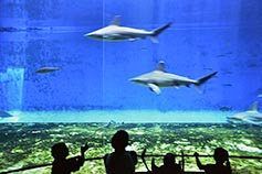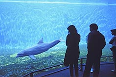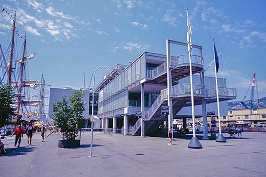 ジェノヴァの旧港につきだしたピアの上に建設されたイタリア最大の水族館。ジェノヴァ出身のコロンブスによる新大陸発見500年を記念して開催された、1992年のジェノヴァ国際博覧会に合わせて建設されたものです。ジェノヴァの建築家のレンゾ・ピアノ・ビルディング・ワークショップが設計し、内装は大阪海遊館を設計したケンブリッジ・セヴン・アソシエイツによるものです。1998年に元の建物に遊歩道でつながる船の展示棟を追加し、展示のコンセプトは、「1492年の旧世界と新世界の出会い、1992年のエコ知識と現在」という視点から、目の前のリグリア海、大西洋、カリブ海の岩礁を見せること、としていますが理解に苦しみます。大小70の水槽があり、世界中から生物を集めて展示しています。メインの展示は大水槽のイルカとサメで標本展示もされ、氷の王国では「ペンギンと南極の海洋生物種、南極大陸と亜南極地域を発見」、としていますが展示されているのは南米のフンボルトペンギンです。魚類や無脊椎動物、クラゲなども展示され、サウンドトラックと特別な照明で効果を高めています。水族館(海側)からジェノヴァの街を一望できるのが良いと思いますが、水族館の建物がヨーロッパの風景にはなじまないのが残念です。