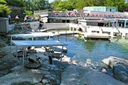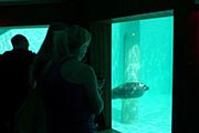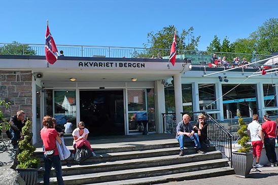 ノルウェー第二の都市のベルゲンにはハンザ同盟時代のカラフルで可愛い建物が海岸に並ぶ旧市街・ブリッゲン地区があり、世界遺産となっています。その前の海を挟んで南側の半島の先端付近に水族館があり、周りは住宅街となっています。ノルウェーには水族館が少なく「水族館に一度も行ったことがない」という人が多い国で、我が国の水族館に比べると非常に小さく、こぢんまりとしています。入り口はチケット売り場を兼ねたショップで、入るとすぐに目の前に「海の生き物との触れ合いコーナー」があり、貝やカレイなどを手に取ることができ子供たちに人気があります。前方にペンギンプールがあり、自然の岩場を再現した飼育展示場でジェンツーペンギンがゆったりと展示されています。広場の反対側、坂道を登ったところにアシカプールがあり飼育員のエサやりのイベントも随時行われています。またアザラシもエサやりをしながら、ショーのようにちょっとした芸を見せてくれます。ワニコーナーは大きなワニのオリが狭く、ちょっとかわいそうな気もします。全体的に展示も地味で、ペンギン以外はオオカミウオやタイセイヨウロブスターなどあまり色のない北の生物が多く展示されています。季節によって開館時間が異なり、料金も違いますがリーズナブルな値段です。