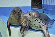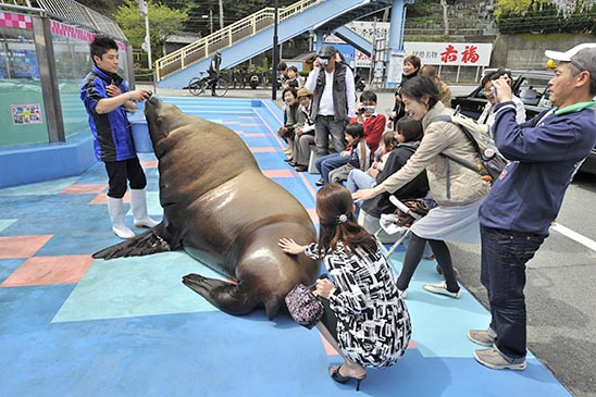 夫婦岩で有名な三重県伊勢市の観光スポット二見浦に隣接する水族館で、1966年にドライブインの施設として開業しました。1989年に行われた改装工事の際に「二見シーパラダイス」へと改称し、2016年に現在の名称である「伊勢夫婦岩ふれあい水族館シーパラダイス」となり、略称で伊勢シーパラダイスと呼ばれています。”ふれあい水族館”という名の通り、動物たちとのふれあいを最大のテーマにしている水族館で、他の水族館では見られないほどのふれあい度合いです。飼育プールから観客のいる広場にセイウチやトドなどが出てきて芸を披露し、記念撮影やふれあうことができますが、驚くのは柵やロープなどの仕切るものがなく、ふれあい体験のチケットを購入する必要もありません。トドに至ってはすぐそこが道路の広場に出てきてパフォーマンスを披露してくれます。今では各地の水族館で見られるようになったカワウソ類との握手は伊勢シーパラダイスが元祖で、2000年より塩化ビニールパイプを使って「ツメナシカワウソとの握手」が行われています。他の水族館で見られない伊勢シーパラダイス唯一のことと言えば「イルカのキャッチボール」があり、文字通りイルカとキャッチボールを行うことができます。ふれあいだけでなくいくつもの飼育最長記録を有しており、”あっかんべーアザラシ”として一世を風靡したミナミゾウアザラシは24年3ヶ月という飼育期間の世界最長記録があります。その他にはツメナシカワウソやノコギリエイの国内最長飼育記録があります。車ですぐのところに大きな水族館があることからそちらに注目されがちですが、伊勢方面にお出かけの際にはぜひ立ち寄りたい水族館です。