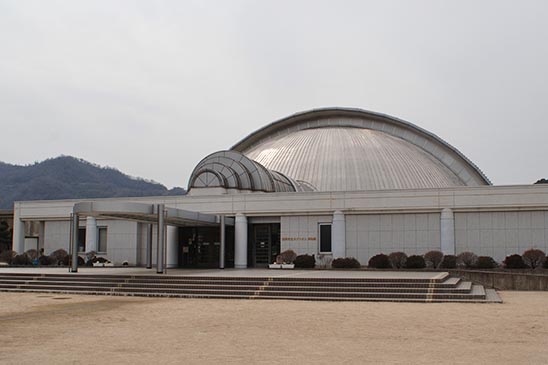 国指定天然記念物であるカブトガニの繁殖地として知られる岡山県笠岡市にある博物館で、カブトガニをテーマとした世界で唯一の博物館です。昭和後期に笠岡湾で大規模な干拓が行われ、生息地の減少による絶滅が危惧されたことでカブトガニの保護や繁殖、研究に取り組む施設として1990年に開館しました。なかなか見ることができない生きたカブトガニの成長過程を見ることができるとても貴重な施設です。建物はカブトガニの形になっています。