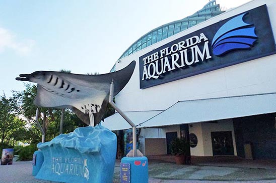 規模としては、それ程大きくはありませんが、「The Tide Pool」が人気で、袖をまくっておとなしいイヌザメやエイ、ヒトデなど様々な生物に触れることが出来、感動の体験ができます。サンゴ保護プログラムでは、フロリダのサンゴ礁の修復に貢献するパネル展示も充実し、米国で最も優れた水族館の1つに数えられています。20,000種類以上の海の生物が飼育され、タンパの海ばかりでなく、世界のサンゴ礁に住む魚類やシャコ貝、サンドタイガーシャーク、ウミガメ、大型のハタの仲間、フロリダ半島に多いアリゲーター、カワウソなど、多種多様な水生動物と出会えます。